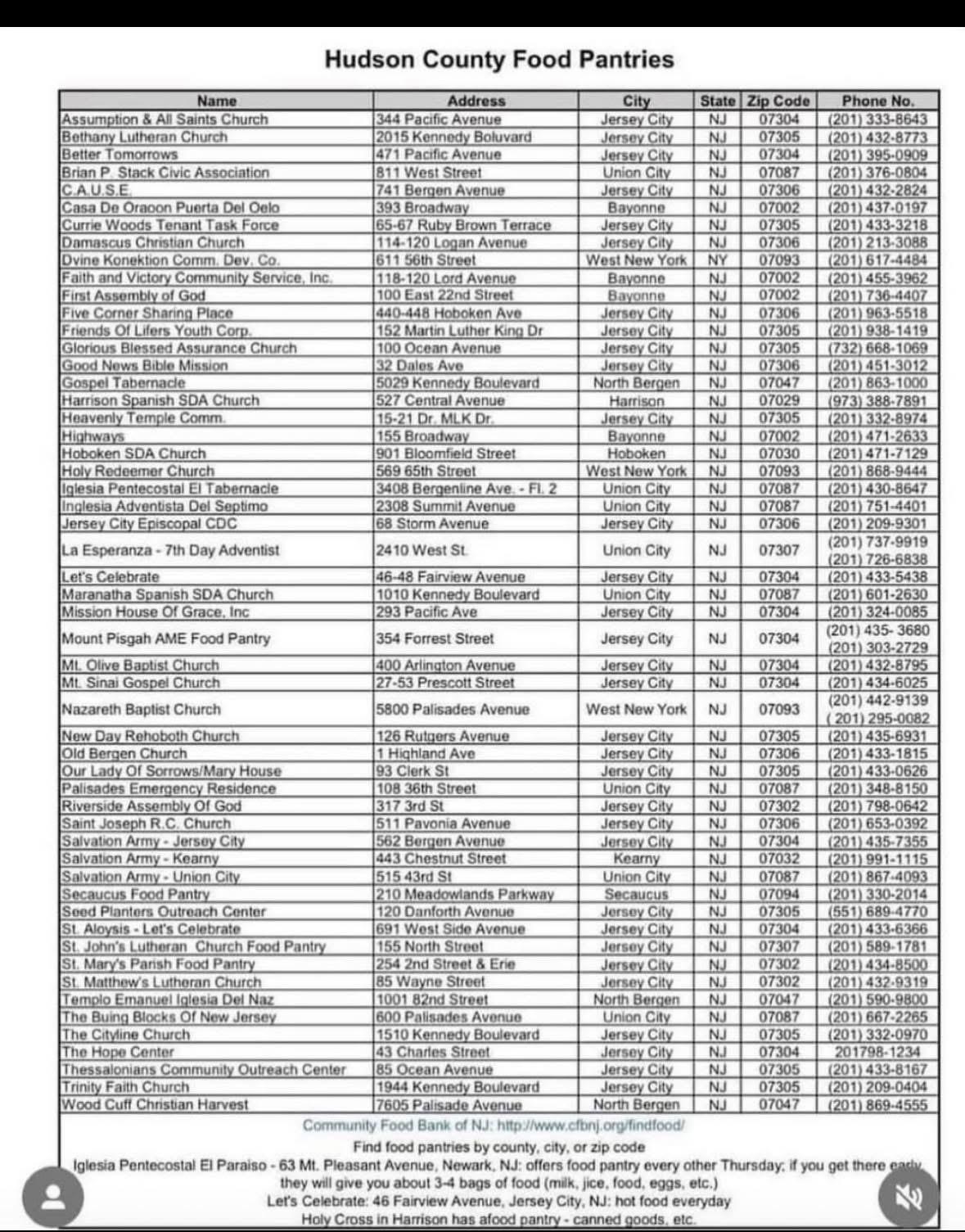Hudson County Food Pantries